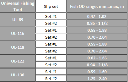 With strain of the string and concurrent travel of the slips, teeth set into the fish. Further pulling up will results in reliable positive engagement between the fishing tool and the fish. UL universal fishing tool is available in right-hand and left-hand thread configuration.
