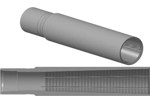 Колокол ловильный сквозной типа ЛКс предназначен для захвата путем навинчивания на наружную поверхность труб, высаженной части труб, муфт, замков и последующего извлечения бурильных, насосно-компрессорных или обсадных колонн при проведении ловильных работ в скважинах.